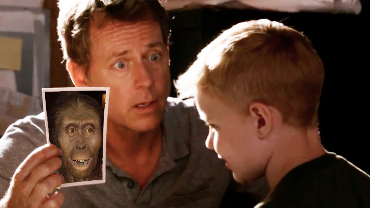 Scoffed at for being Christian propaganda, as it dismisses any logical explanation with a “Yeah, but what if…” mentality, throwing apes into it would most assuredly please the Darwin crowd. I don’t think this movie is either good nor bad based on its philosophy, but it would make for a completely different movie if we had a Neanderthal god telling the cherublike little brat what’s what. Plus, maybe Greg Kinnear wouldn’t be so insufferable.