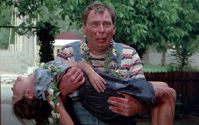 Not really that much gore. There’s some blood here and there, but coming from a TV movie from the early 80s, you shouldn’t really expect much. Most kills are done off screen anyway.