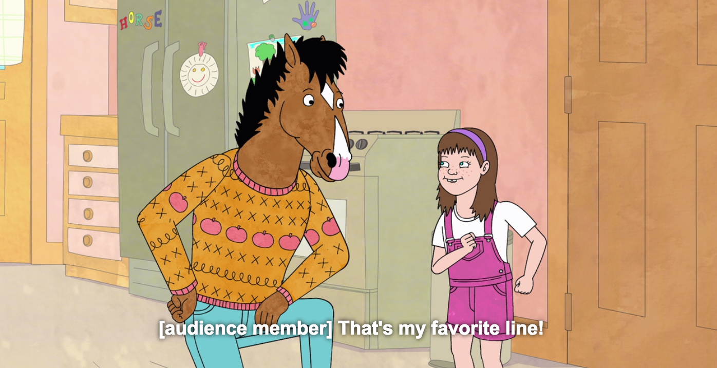 BoJack’s Christmas Special starts with our horse protagonist being very cynical about the Christmas season. While his goofy friend, Todd, tries to get him in spirit. This includes singing carols and eating a comically large candy cane. After failing to get BoJack excited, Todd suggests they watch an old Christmas special from BoJack’s old TV series, Horsin’ Around. The preciseness at which they satirize sitcom Christmas specials, especially ones in the 80s and 90s, is the best takedown of the phenomenon that I’ve seen. They got just about everything right, and even threw in some extra commentary about multi-camera sitcoms and their audiences.