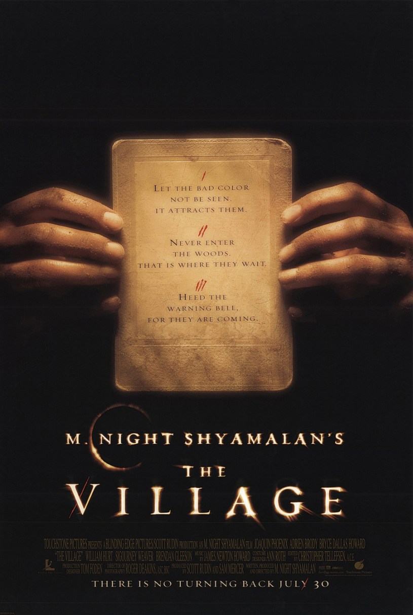 The Village is a story of a puritan-style village, completely isolated from the outside world. The woods are supposedly haunted by creatures that threaten anyone who leaves the friendly confines of their small town. When a young man is stabbed by one of their own, a blind woman must traverse the woods to get medicine from a nearby town.